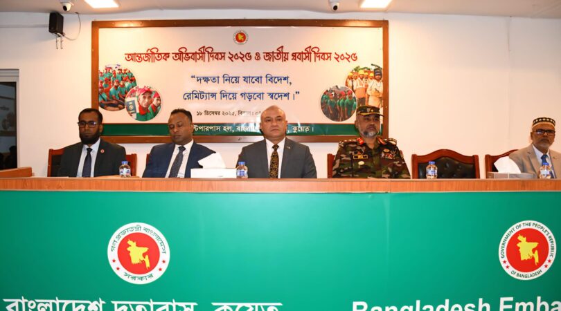 বিশেষ প্রতিনিধিঃ কুয়েতে বাংলাদেশ দূতাবাসে যথাযোগ্য মর্যাদা ও উৎসাহ উদ্দীপনার মধ্য দিয়ে ‘আন্তর্জাতিক অভিবাসী দিবস-২০২৫’ ও ‘জাতীয় প্রবাসী দিবস-২০২৫’ পালিত হয়েছে। বৃহস্পতিবার (১৮ ডিসেম্বর) আয়োজিত এই অনুষ্ঠানের এবারের প্রতিপাদ্য ছিল— ‘দক্ষতা নিয়ে যাবো বিদেশ, রেমিট্যান্স দিয়ে গড়বো স্বদেশ’।