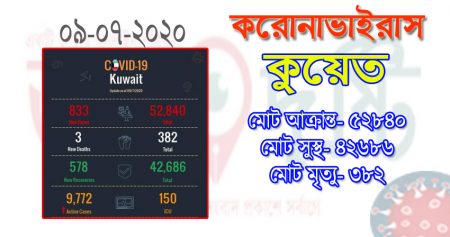 কুয়েতের স্বাস্থ্য মন্ত্রণালয়ের তথ্য মতে, আজ করোনা ভাইরাসে আরো ↪৮৩৩ জন নতুন করে আক্রান্ত হয়েছেন বলে শনাক্ত করা হয়েছে।