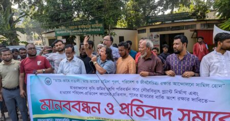 বিকল্প জায়গা থাকতে ভূমির শ্রেণি পরিবর্তন ও কৃষিজমি নষ্ট করে ‘পূবের হাওরে’ ২৫ মেগাওয়াট সৌরবিদ্যুৎ প্ল্যান্ট স্থাপনের প্রতিরোধের আহ্বান জানান আনেদালনকারীরা।