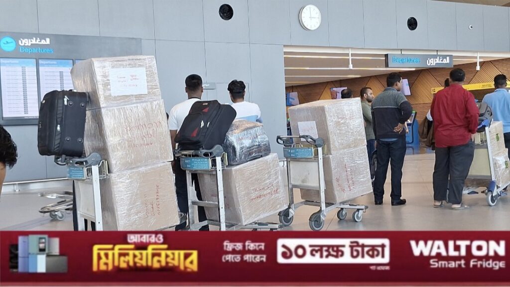 বিমানবন্দরের প্রস্থান এলাকায় সারি সারি ট্রলিতে সাজানো বিশাল আকারের কার্টনগুলো প্রবাসীদের কঠোর পরিশ্রম আর ভালোবাসার প্রতীক। এসব কার্টনে ইলেকট্রনিক্স সামগ্রী থেকে শুরু করে পোশাক, খেলনা এবং নিত্যপ্রয়োজনীয় জিনিসপত্র সবই রয়েছে। প্রবাসীরা জানান, দেশের অর্থনীতির চাকাকে সচল রাখতে তাদের পাঠানো রেমিটেন্স যেমন গুরুত্বপূর্ণ, তেমনি পরিবারের সদস্যদের মুখে হাসি ফোটানোটাও তাঁদের কাছে সমান জরুরি।