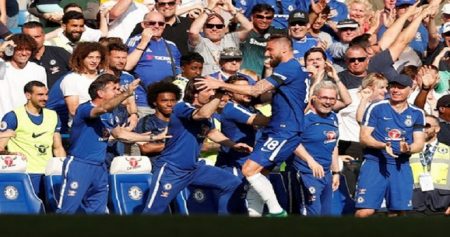 ম্যাচের শুরু থেকেই স্টামফোর্ড ব্রিজে আধিপত্য বিস্তার করে খেলতে থাকে চেলসি। ৩২ মিনিটেই চেলসিকে এগিয়ে নেন অলিভিয়ার জিরুড।ডান পাশ থেকে ভিক্টর মোসেসের বাড়ানো ক্রসে মাথা ছুঁয়ে বল জালে জড়ান এ ফ্রেঞ্চ স্ট্রাইকার।