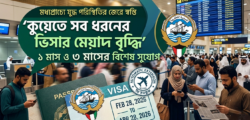 ডেস্ক রিপোর্ট- কুয়েতের স্বরাষ্ট্র মন্ত্রণালয় বর্তমান বিশেষ পরিস্থিতি বিবেচনায় সব ধরনের ভিজিট ভিসার মেয়াদ স্বয়ংক্রিয়ভাবে এক মাস বৃদ্ধি এবং দেশের বাইরে থাকা প্রবাসীদের জন্য অতিরিক্ত তিন মাসের অনুপস্থিতির অনুমতি প্রদানের ঘোষণা দিয়েছে। বর্তমান প্রেক্ষাপটে যাদের ভিজিট ভিসার মেয়াদ শেষ হয়ে গেছে বা শেষ হওয়ার পথে, তাদের ভিসার মেয়াদ আগামী ২৮ ফেব্রুয়ারি ২০২৬ থেকে কার্যকর হবে .........বিস্তারিত