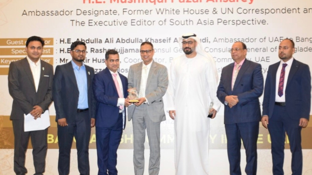 স্থানীয় সময় সোমবার রাতে দুবাইয়ের মিলেনিয়াম প্লাজা ডাউনটাউন হোটেলে সাংবাদিক ও রাষ্ট্রদূত মুশফিকুল ফজল আনসারীকে দেওয়া এক সংবর্ধনা সভায় তিনি অতিথি হিসেবে উপস্থিত ছিলেন।