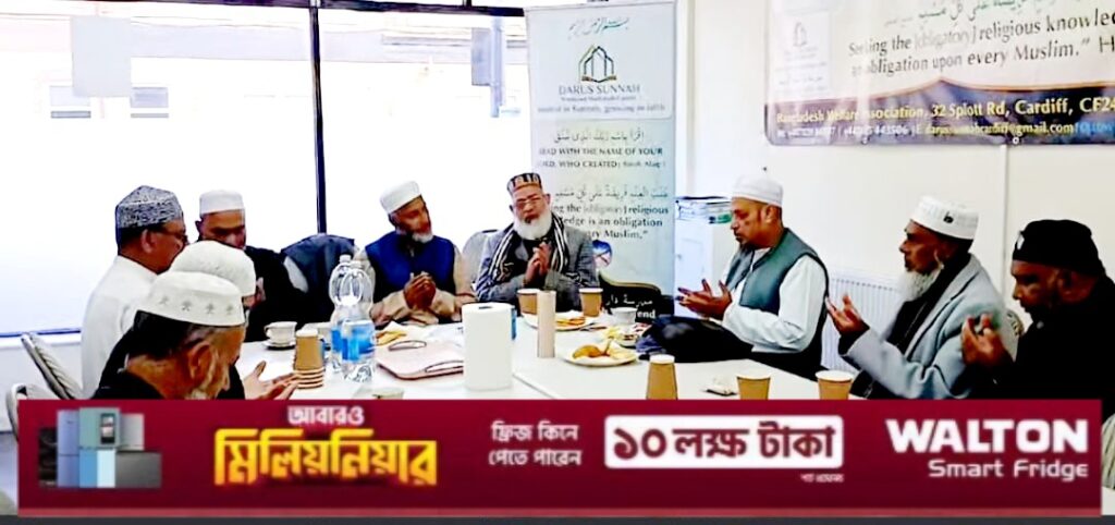 কার্ডিফ দারুস সুন্নাহ মাদ্রাসার সভাপতি মোহাম্মদ আব্দুল হান্নান শহীদুল্লাহ্-এর সভাপতিত্বে এবং কার্ডিফ শাহজালাল মসজিদের ট্রাষ্টি ও দারুস সুন্নাহ মাদ্রাসা কমিটির জয়েন্ট সেক্রেটারি মোহাম্মদ মকিস মনসুর-এর পরিচালনায় সভাটি অনুষ্ঠিত হয়।
