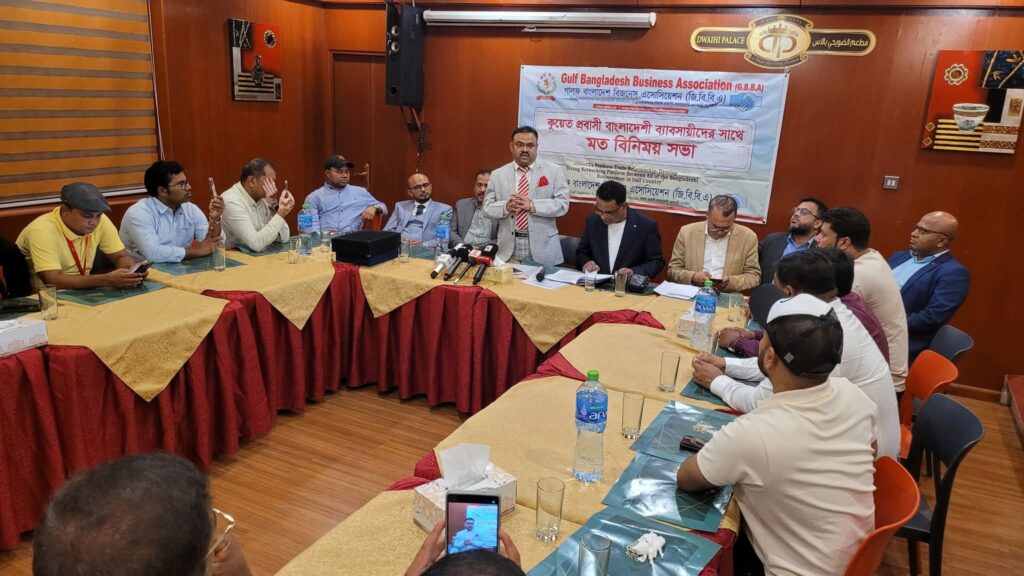 প্রবাসী বাংলাদেশি ব্যবসায়ীদের মধ্যে ঐক্য ও ব্যবসা সম্প্রসারণের লক্ষ্য নিয়ে কুয়েতে এক মতবিনিময় সভার আয়োজন করেছে গাল্ফ বাংলাদেশ বিজনেস অ্যাসোসিয়েশন (GBBA)।